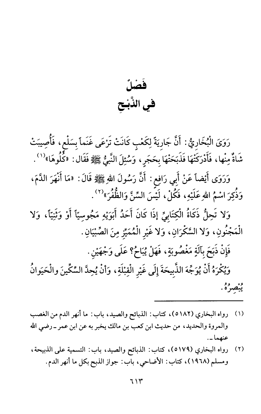 (¬1) رواه البخاري (5182)، كتاب: الذبائح والصيد، باب: ما أنهر الدم من الغصب والمروة والحديد، من حديث ابن كعب بن مالك يخبر به عن ابن عمر -رضي الله عنهما-.