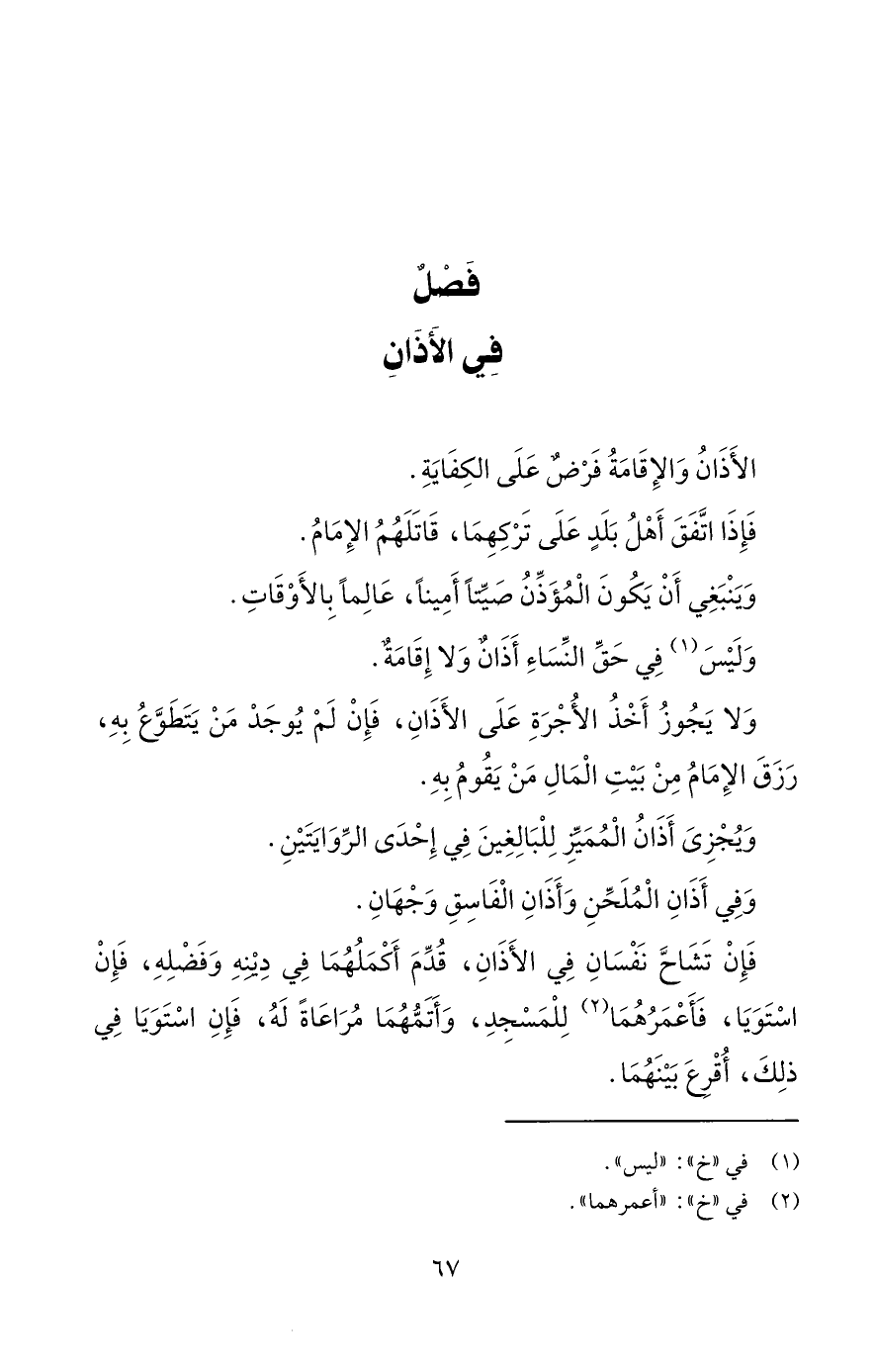 فَإِنْ تَشَاحَّ نَفْسَانِ فِي الأَذَانِ، قُدِّمَ أَكْمَلُهُمَا فِي دِيْنِهِ وَفَضلِهِ، فَإِنْ اسْتَوَيَا، فَأَعْمَرُهُمَا (¬2) لِلْمَسْجِدِ، وَأَتَمُّهُمَا مُرَاعَاةً لَهُ، فَإِنِ اسْتَوَيَا فِي ذلِكَ، أُقْرِعَ بَيْنَهُمَا.