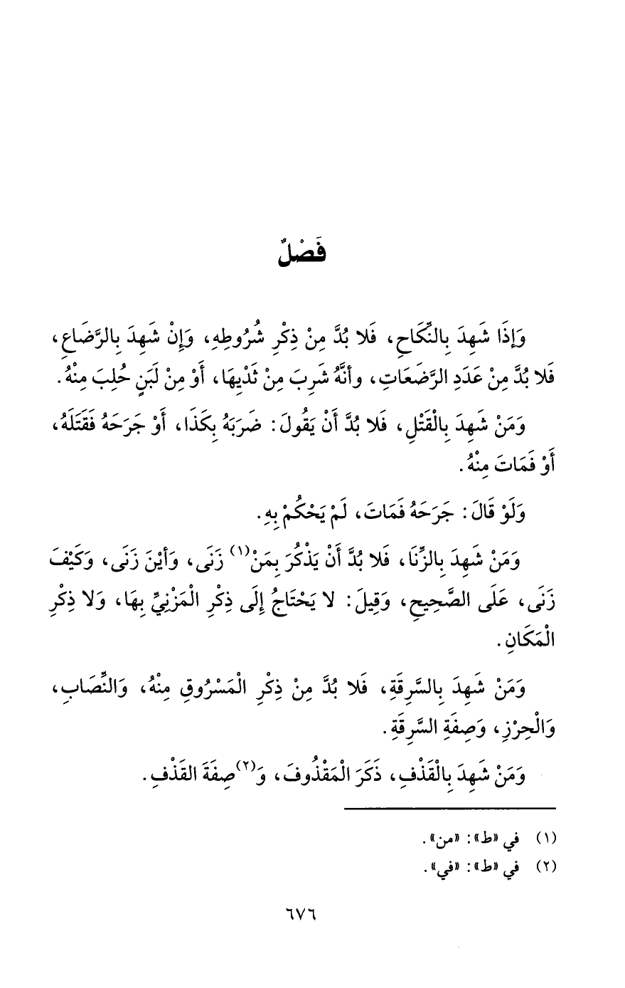 وَإذَا شَهِدَ بِالنِّكَاحِ، فَلا بُدَّ مِنْ ذِكْرِ شُرُوطِهِ، وَإِنْ شَهِدَ بِالرَّضَاعِ، فَلا بدَّ مِنْ عَدَدِ الرَّضَعَاتِ، وأنَّهُ شَرِبَ مِنْ ثدْيِهَا، أَوْ مِنْ لَبَنٍ حُلِبَ مِنْهُ.