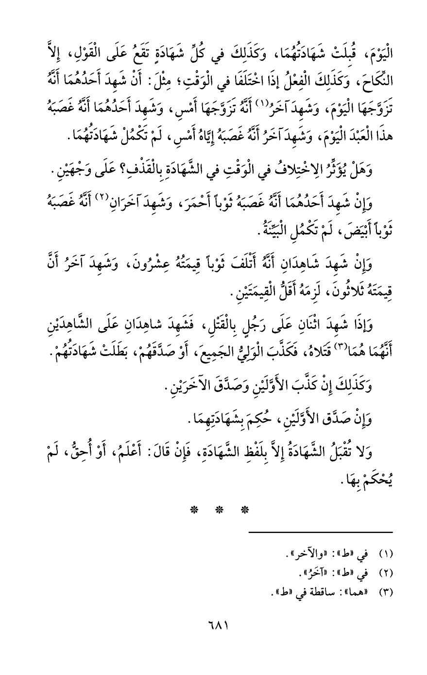 الْيَوْمَ، قُبِلَتْ شَهَادَتُهُمَا، وَكَذَلِكَ في كُلِّ شَهَادَةٍ تَقَعُ عَلَى الْقَوْلِ، إِلَّا النِّكّاحَ، وَكَذَلِكَ الْفِعْلُ إذا اخْتَلَفَا في الْوَقْتِ؛ مِثْلَ: أَنْ شَهِدَ أَحَدُهُمَا أَنَّهُ تَزَوَّجَهَا الْيَوْمَ، وَشَهِدَ آخَرُ (¬1) أَنَّهُ تَزَوَّجَهَا أَمْسِ، وَشَهِدَ أَحَدُهُمَا أَنَّهُ غَصَبَهُ هذَا الْعَبْدَ الْيَوْمَ، وَشَهِدَ آخَرُ أَنَّهُ غَصَبَهُ إِيَّاهُ أَمْسِ، لَمْ تَكْمُلْ شَهَادَتُهُمَا.