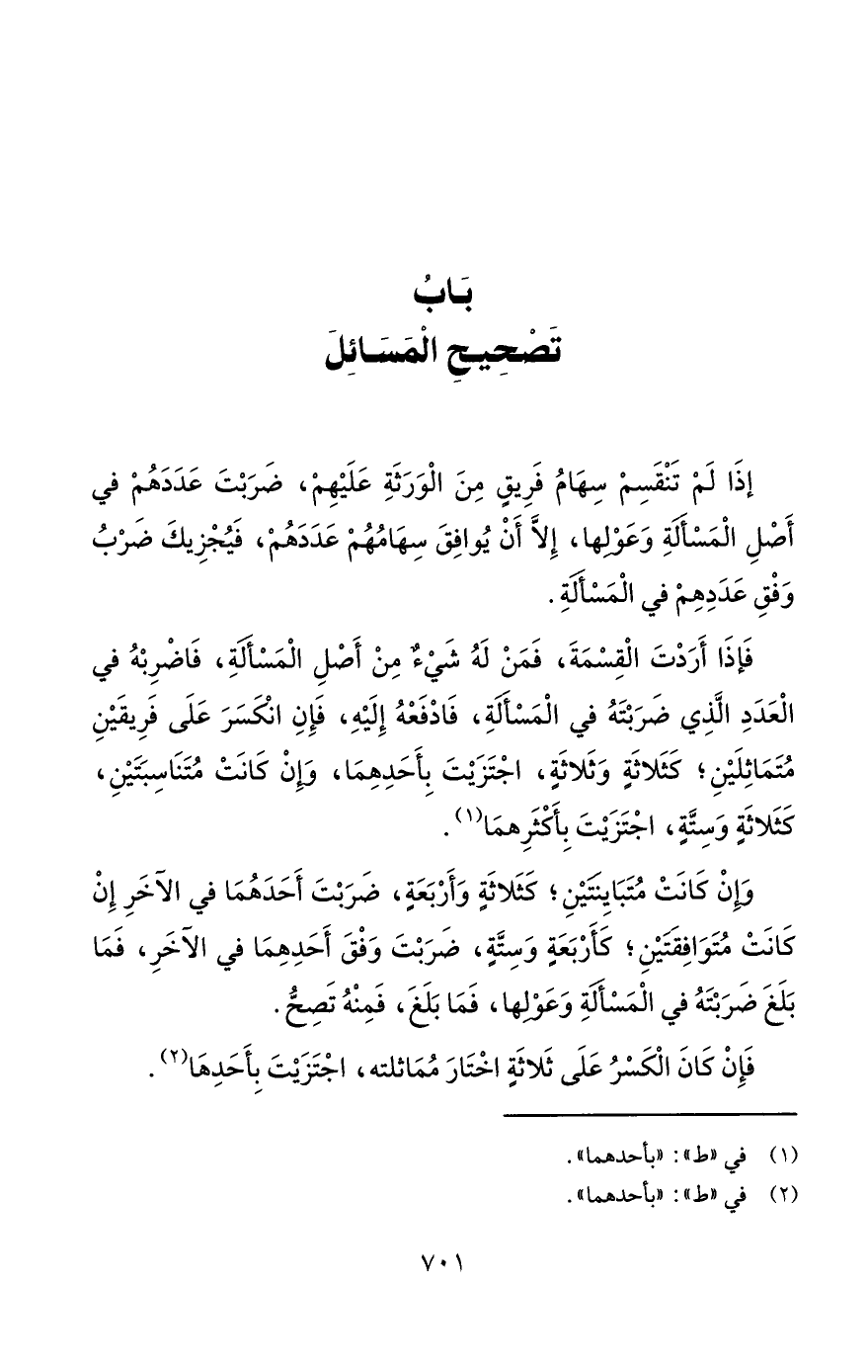 بَابُ تَصْحِيحِ الْمَسَائِلَ