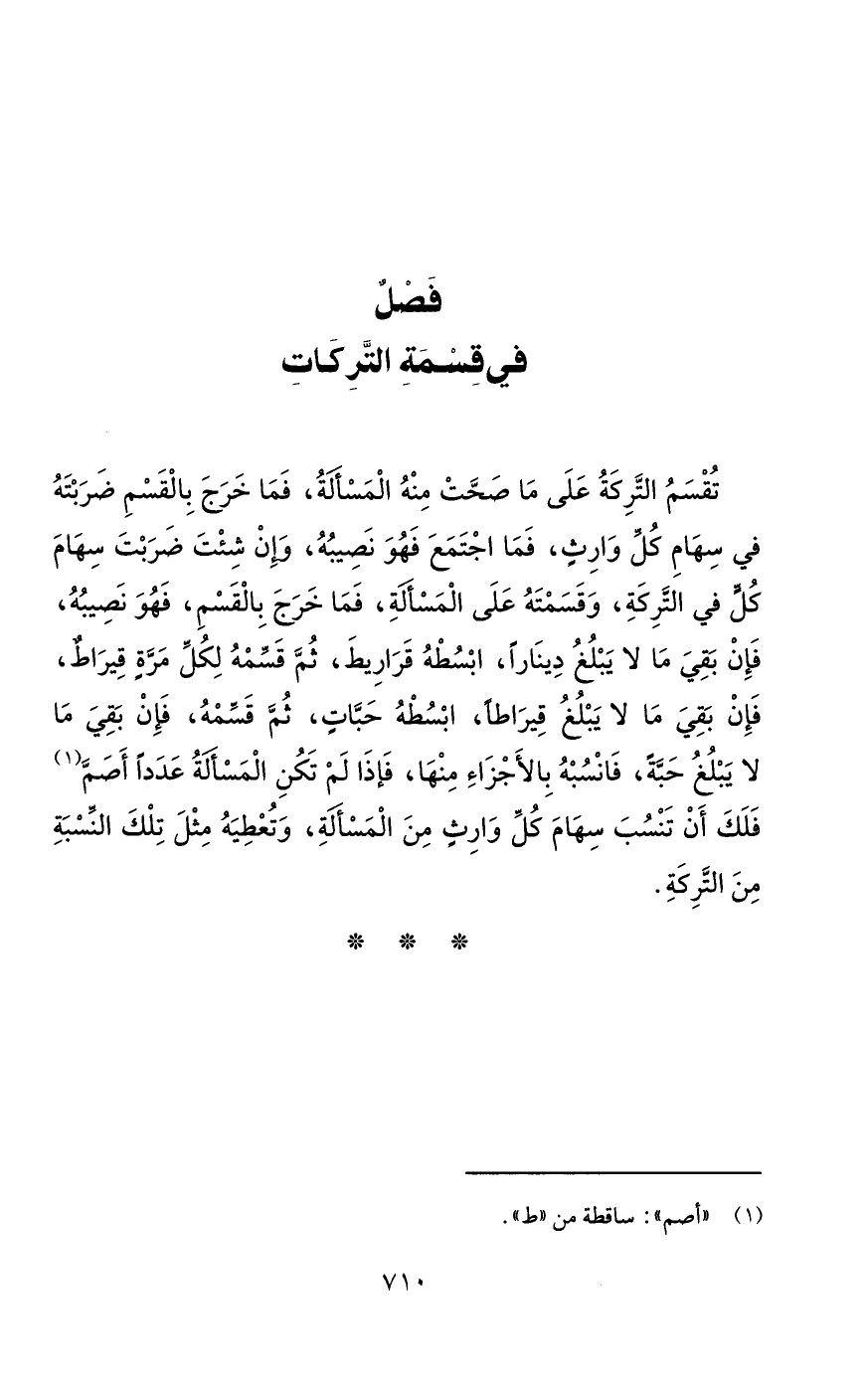 فَصْلٌ في قِسْمَةِ التَّرِكَاتِ