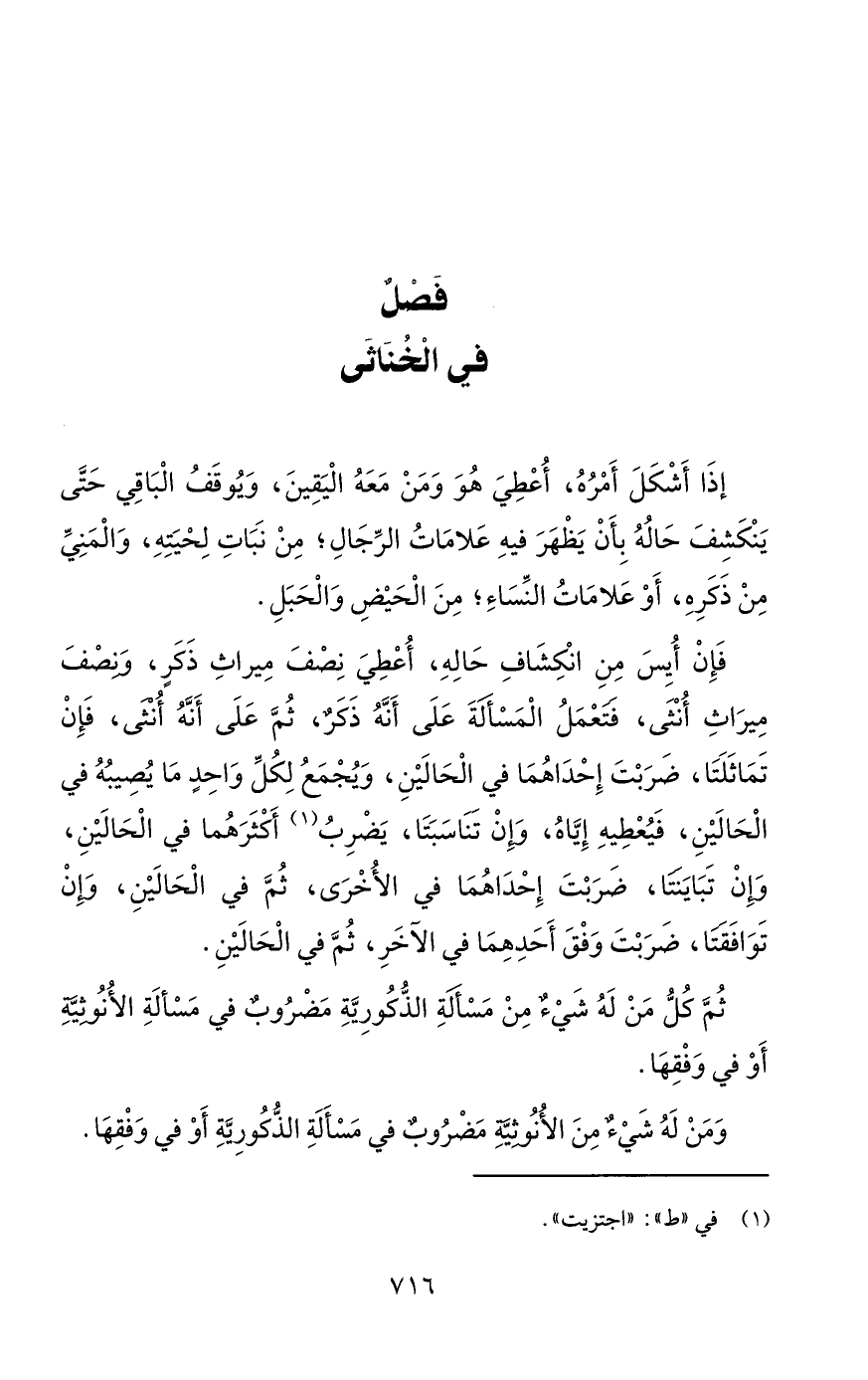 فَصْلٌ في الْخُنَاثَى