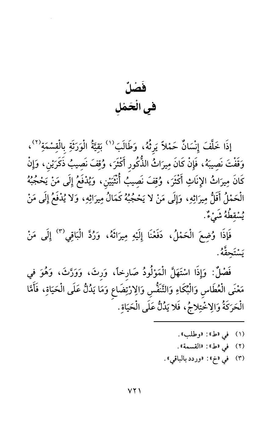 فَصْلٌ في الْحَمْلِ