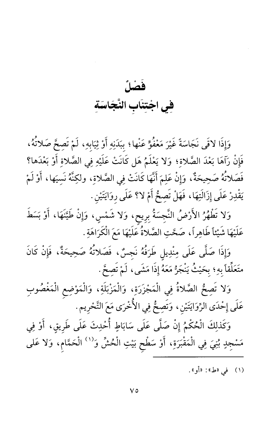 فَصْلٌ فِي اجْتِنَابِ النَّجَاسَةِ
