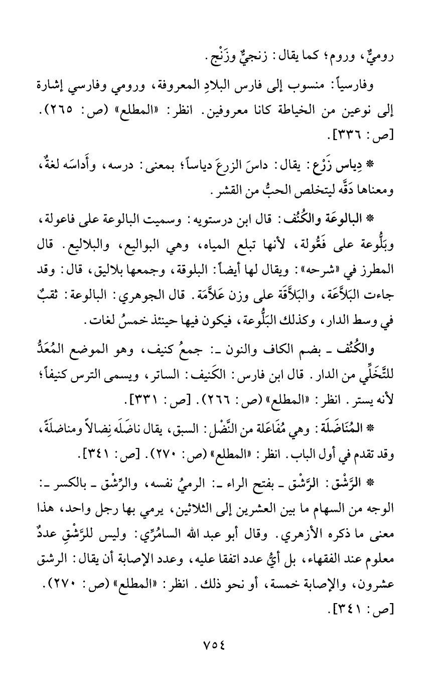 وفارسيًا: منسوب إلى فارس البلادِ المعروفة، ورومي وفارسي إشارة إلى نوعين من الخياطة كانا معروفين. انظر: "المطلع" (ص: 265). [ص: 336].