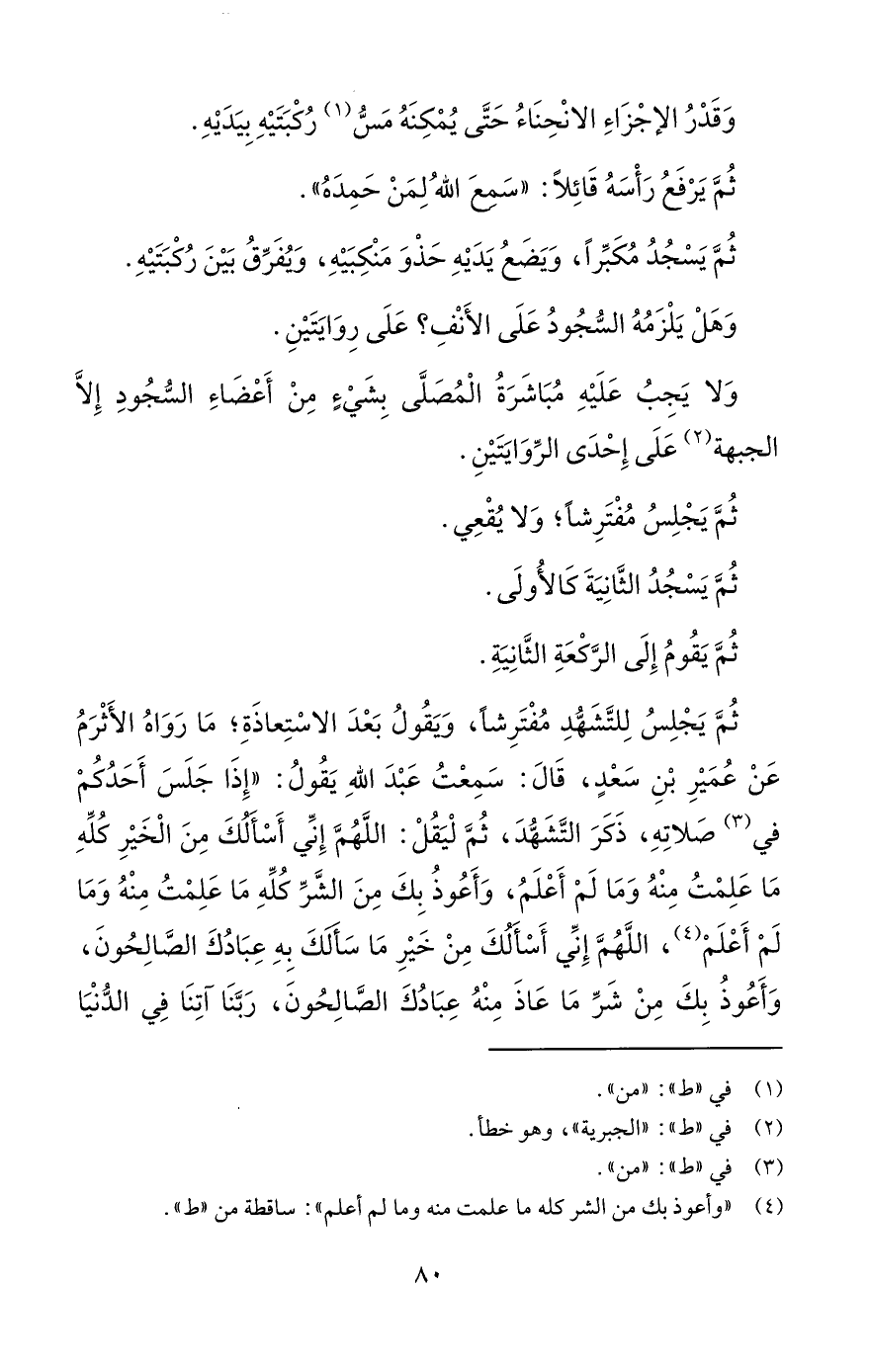 ثُمَّ يَجْلِسُ لِلتَّشَهُّدِ مُفْتَرِشاً، وَيَقُولُ بَعْدَ الاسْتِعاذَةِ؛ مَا رَوَاهُ الأَثْرَمُ عَنْ عُمَيْرِ بْنِ سَعْدٍ، قَالَ: سَمِعْتُ عَبْدَ اللهِ يَقُولُ: "إِذَا جَلَسَ أَحَدُكُمْ فِي (¬3) صَلاتِهِ، ذَكَرَ التَّشَهُّدَ، ثُمَّ لْيَقُلْ: اللَّهُمَّ إِنِّي أَسْأَلُكَ مِنَ الْخَيْرِ كُلِّهِ مَا عَلِمْتُ مِنْهُ وَمَا لَمْ أَعْلَمُ، وَأَعُوذُ بِكَ مِنَ الشَّرِّ كُلِّهِ مَا عَلِمْتُ مِنْهُ وَمَا لَمْ أَعْلَمْ (¬4)، اللَّهُمَّ إِنِّي أَسْألكَ مِنْ خَيْرِ مَا سَالَكَ بِهِ عِبَادُكَ الصَّالِحُونَ، وَأَعُوذُ بِكَ مِنْ شَرِّ مَا عَاذَ مِنْهُ عِبَادُكَ الصَّالِحُونَ، رَبَّنَا آتِنَا فِي الدُّنْيَا