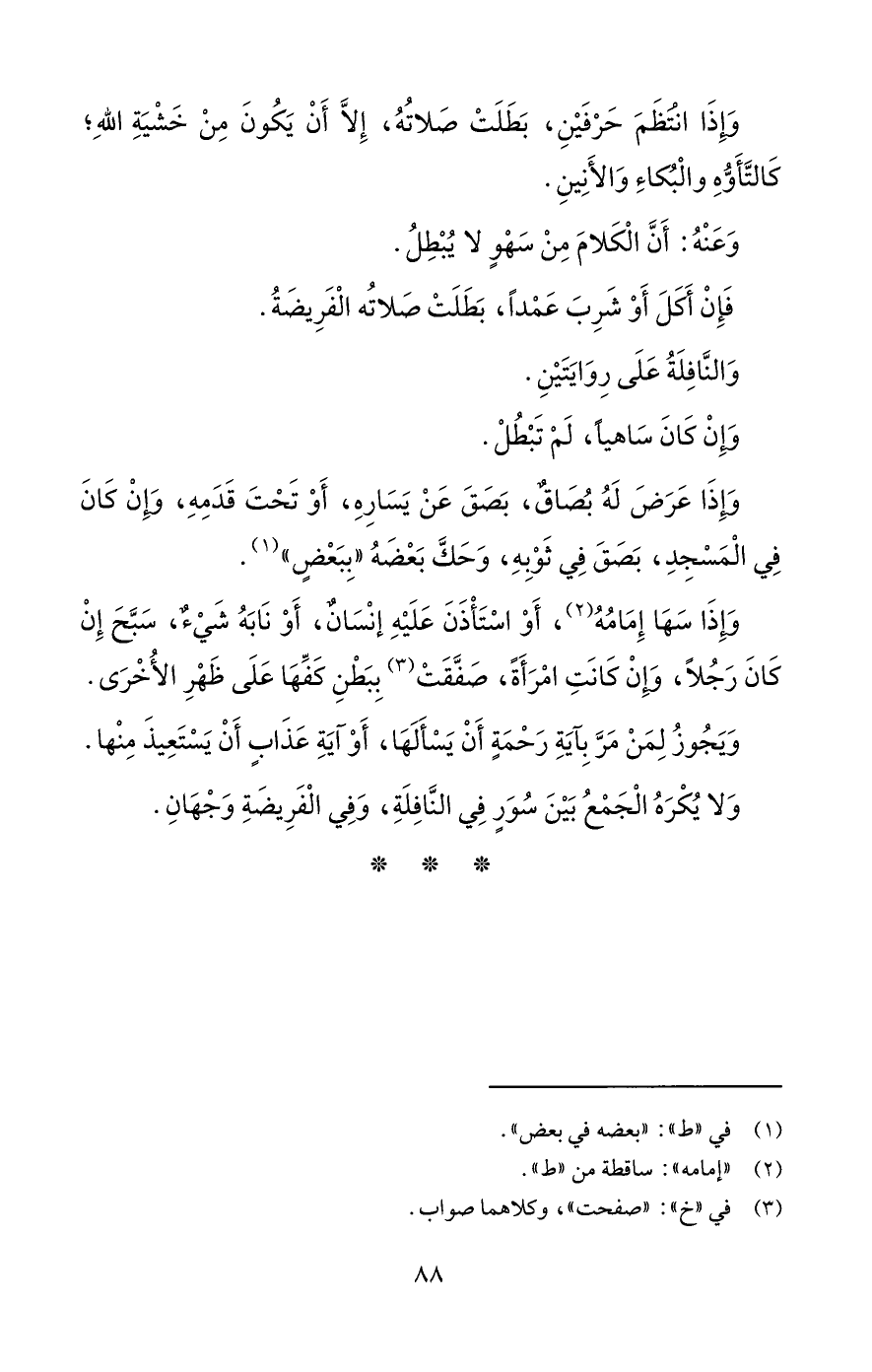 وَإِذَا انتظَمَ حَرْفَيْنِ، بَطَلَتْ صَلاتُهُ، إِلَّا أَنْ يَكُونَ مِنْ خَشْيَةِ اللهِ؛ كَالتَّأَوُّهِ والْبُكاءِ وَالأَنِينِ.