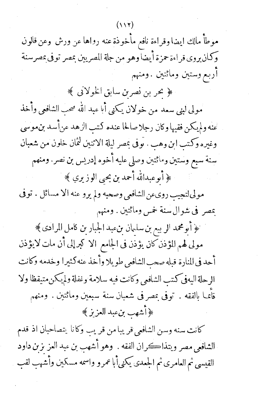 مَوْلًى لِتُجِيبَ رَوَى عَنِ الشَّافِعِيِّ وَصَحِبَهُ وَلَمْ يَرْوِ عَنْهُ إِلا مسَائِل توفى بِمصْر فى شَوَّال سنة خمس وَمِائَتَيْنِ وَمِنْهُمْ