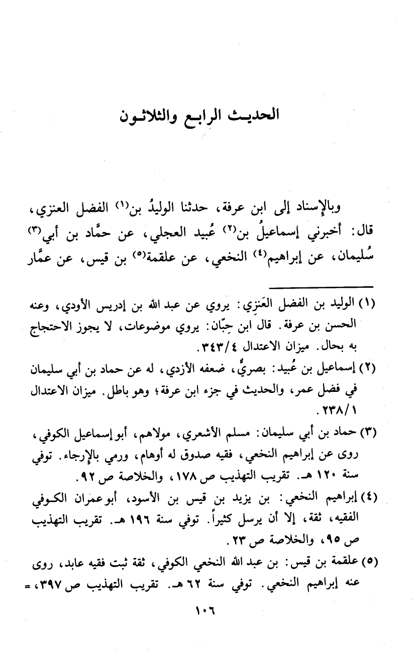 وَبِالْإِسْنَادِ إِلَى ابْن عَرَفَة حَدثنَا الْوَلِيد بن الْفضل الْعَنزي قَالَ أَخْبرنِي إِسْمَاعِيل بن عبيد الْعجلِيّ عَن حَمَّاد بن أبي سُلَيْمَان عَن إِبْرَاهِيم النَّخعِيّ عَن عَلْقَمَة بن قيس عَن عمار