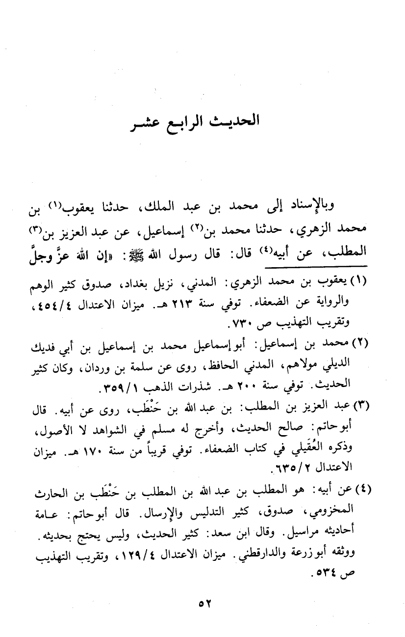 وَبِالْإِسْنَادِ إِلَى مُحَمَّد بن عبد الْملك حَدثنَا يَعْقُوب بن مُحَمَّد الزُّهْرِيّ حَدثنَا مُحَمَّد بن إِسْمَاعِيل عَن عبد الْعَزِيز بن الْمطلب عَن أَبِيه قَالَ قَالَ رَسُول الله صلى الله عَلَيْهِ وَسلم إِن الله عز وَجل
