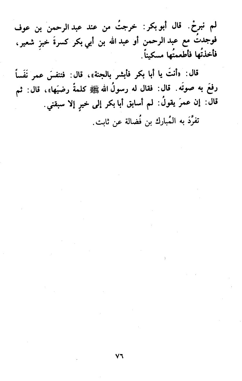 قَالَ أَنْت يَا أَبَا بكر فأبشر بِالْجنَّةِ قَالَ فتنفس عمر نفسا رفع بِهِ صَوته قَالَ فَقَالَ لَهُ رَسُول الله صلى الله عَلَيْهِ وَسلم كلمة رضيها قَالَ ثمَّ قَالَ إِن عمر يَقُول لم أسابق أَبَا بكر إِلَى خير إِلَّا سبقني