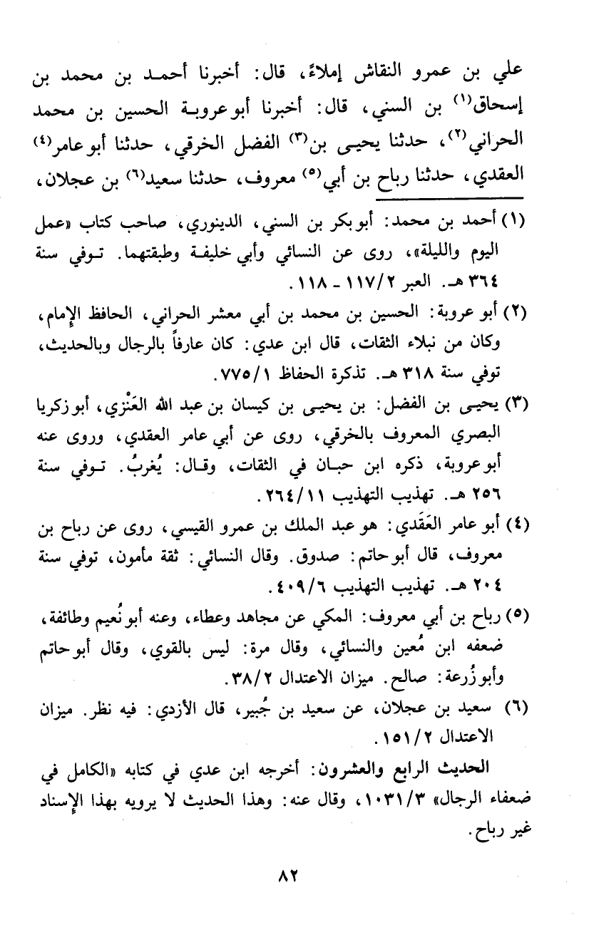 عَليّ بن عَمْرو النقاش إملاء قَالَ أخبرنَا أَحْمد بن مُحَمَّد بن إِسْحَاق بن السّني قَالَ أخبرنَا أَبُو عرُوبَة الْحُسَيْن بن مُحَمَّد الْحَرَّانِي حَدثنَا يحيى بن الْفضل الْخرقِيّ حَدثنَا أَبُو عَامر الْعَقدي حَدثنَا رَبَاح بن أبي مَعْرُوف حَدثنَا سعيد بن عجلَان