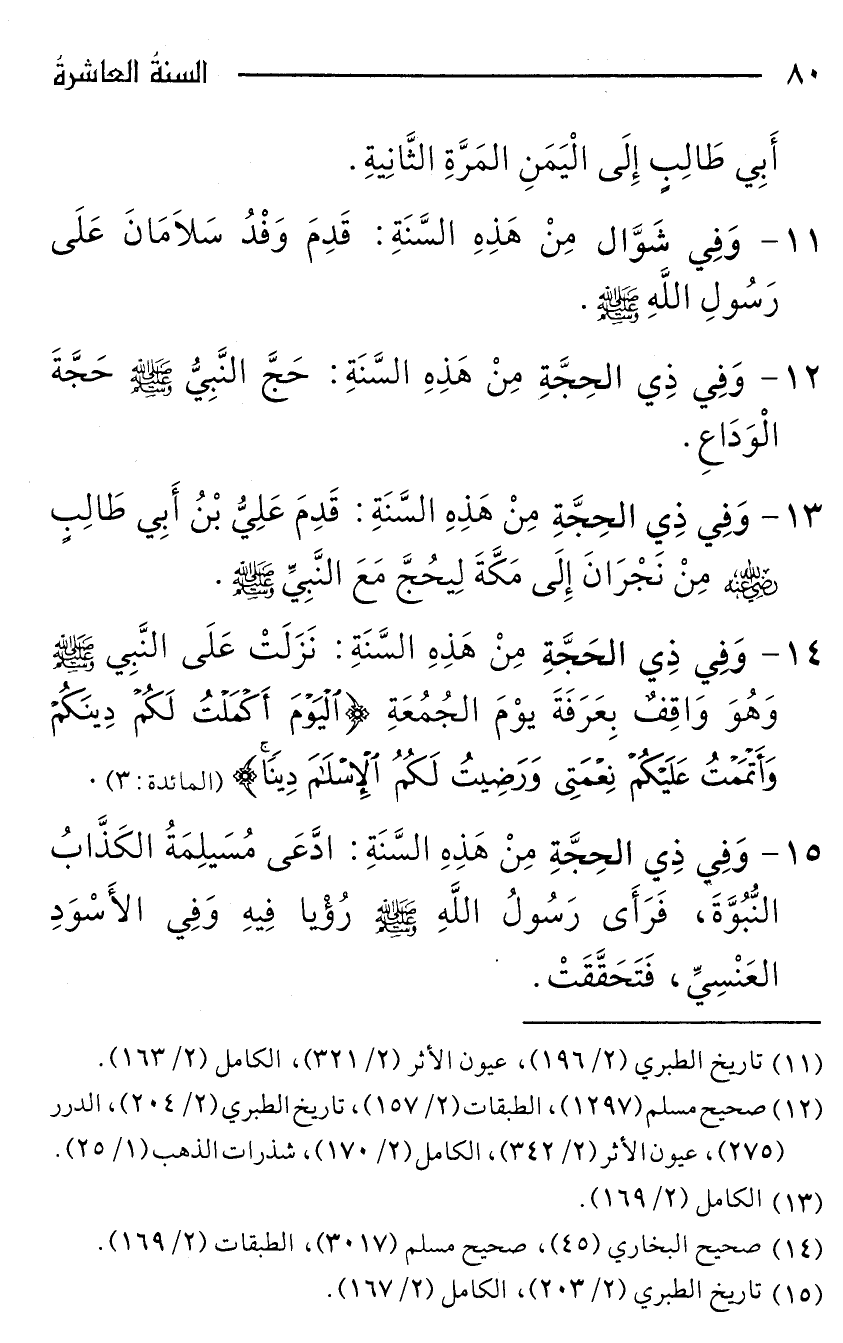 13 - وفي ذي الحجة من هذه السنة: قدم علي بن أبي طالب - رضي الله عنه - من نجران إلى مكة ليحج مع النبي - صلى الله عليه وسلم -.