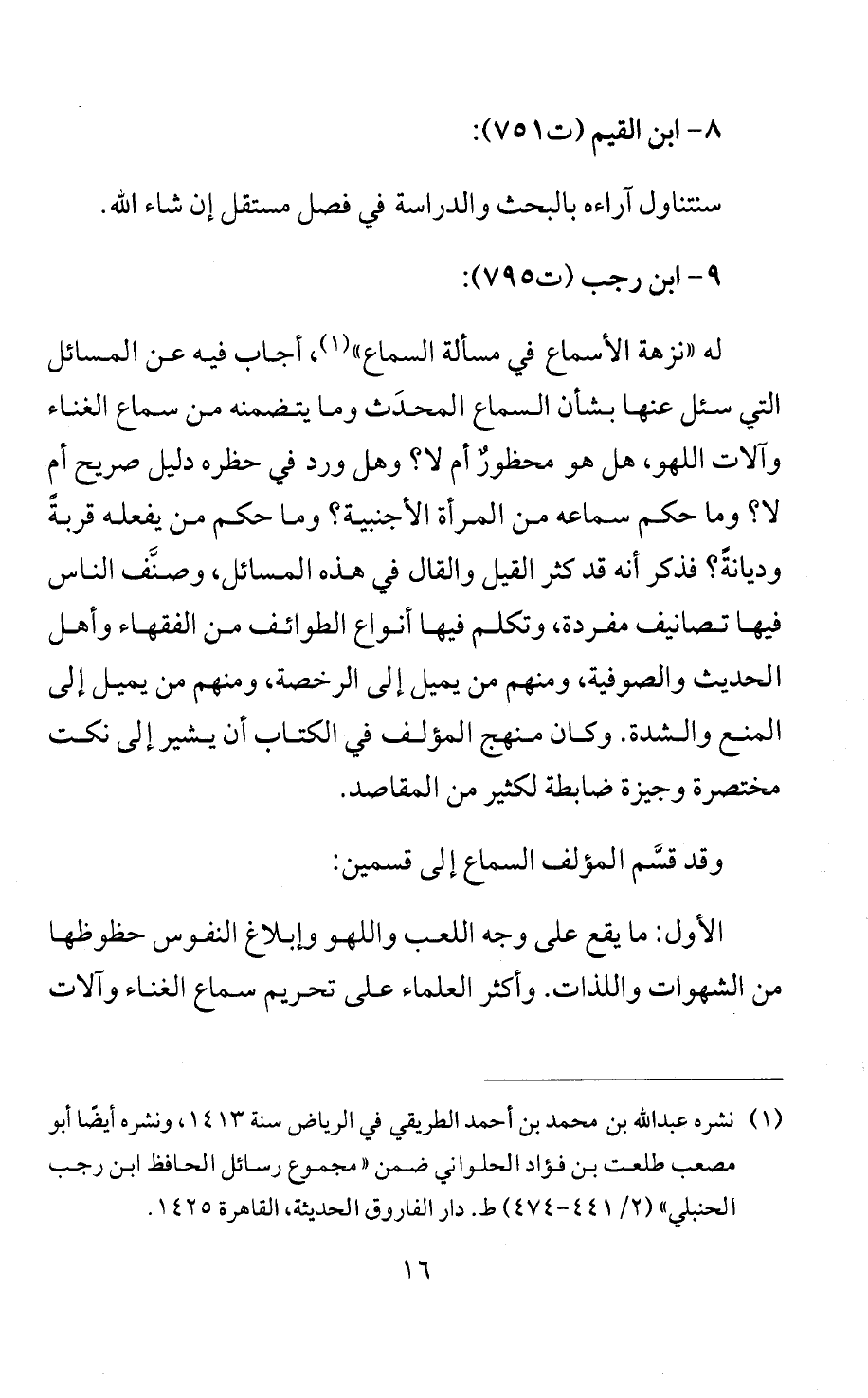 وقد قسَّم المؤلف السماع إلى قسمين:
