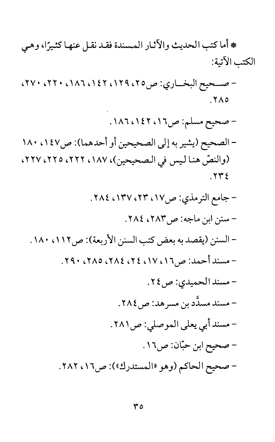 - الصحيح (يشير به إلى الصحيحين أو أحدهما): ص 147، 180 (والنصّ هنا ليس في الصحيحين)، 187، 222، 225، 227، 234.