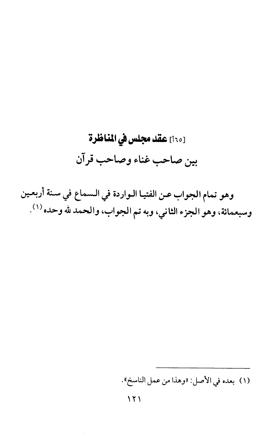 عقد مجلس في المناظرة بين صاحب غناء وصاحب قرآن