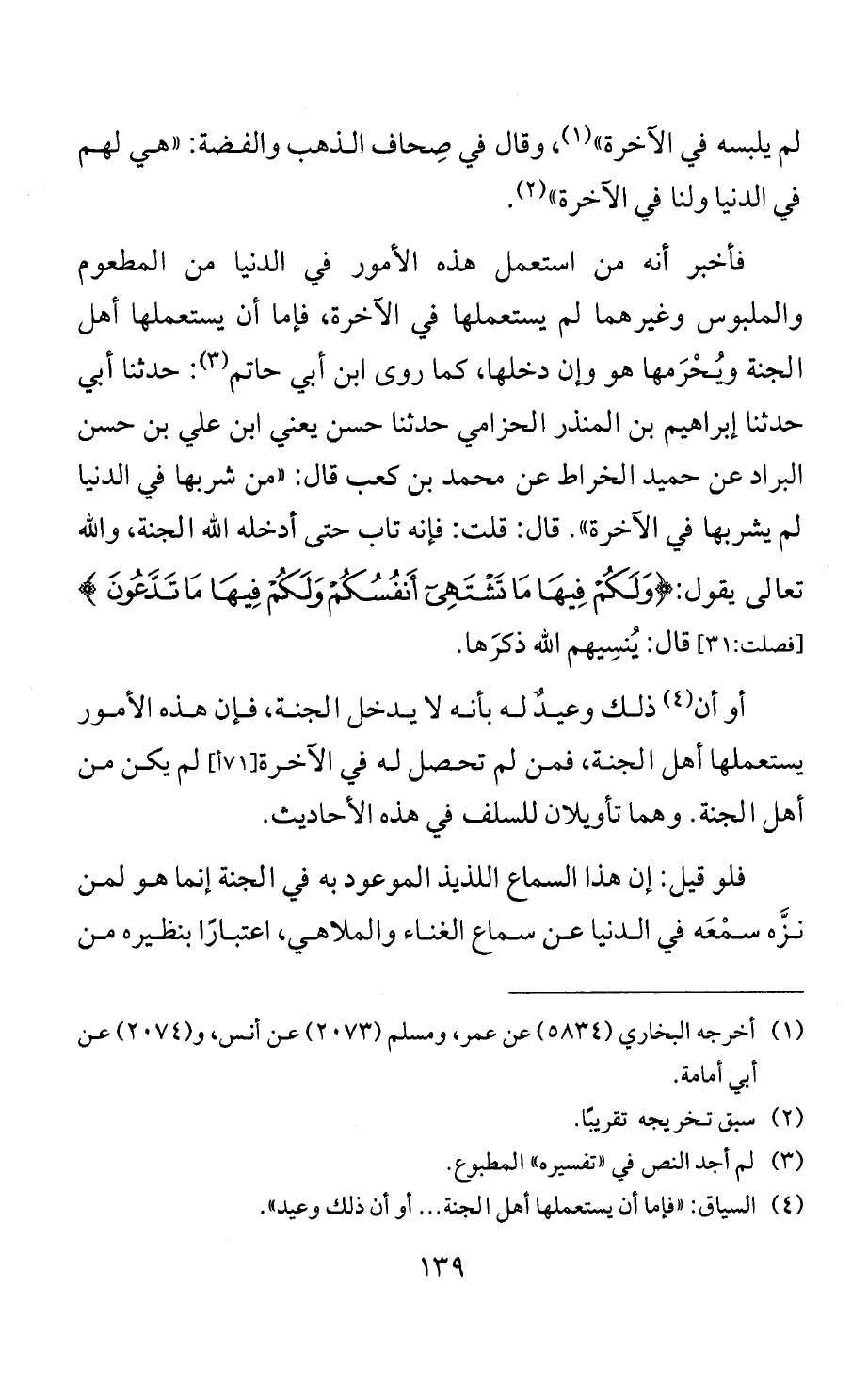 فلو قيل: إن هذا السماع اللذيذ الموعود به في الجنة إنما هو لمن نزَّه سمْعَه في الدنيا عن سماع الغناء والملاهي، اعتبارًا بنظيره من