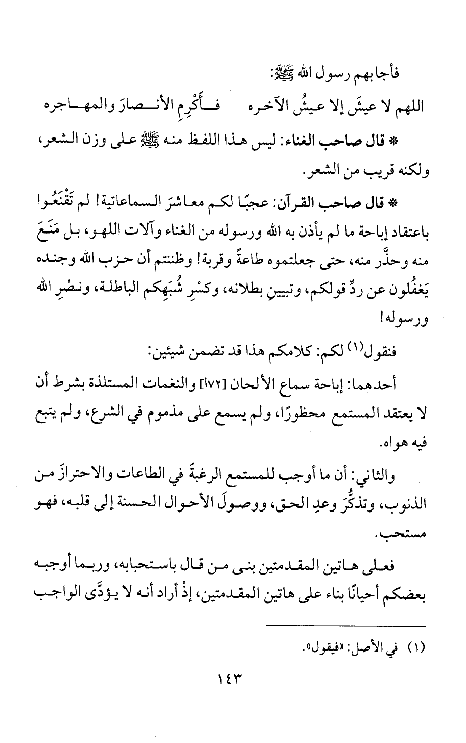 * قال صاحب القرآن: عجبًا لكم معاشرَ السماعاتية! لم تَقْنَعُوا باعتقاد إباحة ما لم يأذن به الله ورسوله من الغناء وآلات اللهو، بل مَنَعَ منه وحذَّر منه، حتى جعلتموه طاعةً وقربة! وظننتم أن حزب الله وجنده يَغفُلون عن ردِّ قولكم، وتبيين بطلانه، وكسْرِ شُبَهِكم الباطلة، ونصْرِ الله ورسوله!