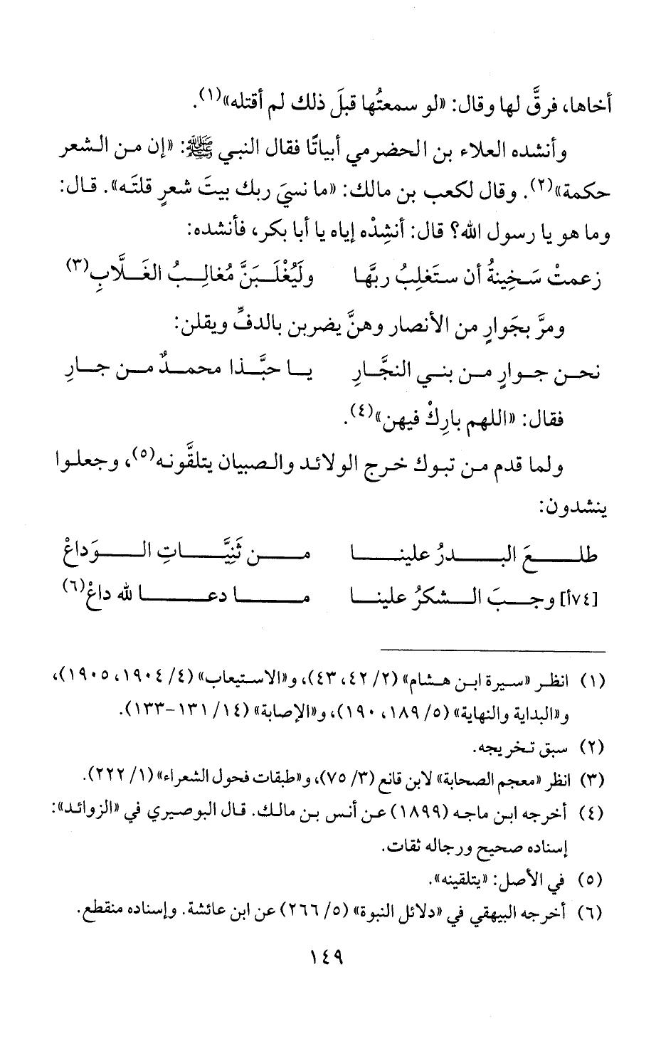 وأنشده العلاء بن الحضرمي أبياتًا فقال النبي - صلى الله عليه وسلم -: "إن من الشعر حكمة" (¬2). وقال لكعب بن مالك: "ما نسيَ ربك بيتَ شعرٍ قلتَه". قال: وما هو يا رسول الله؟ قال: أنشِدْه إياه يا أبا بكر، فأنشده: