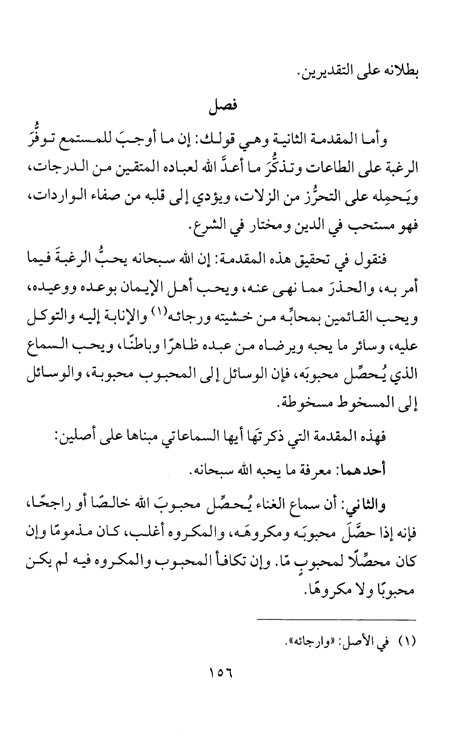 وأما المقدمة الثانية وهي قولك: إن ما أوجبَ للمستمع توفُّرَ الرغبة على الطاعات وتذكُّرَ ما أعدَّ الله لعباده المتقين من الدرجات، ويَحمِله على التحرُّز من الزلات، ويؤدي إلى قلبه من صفاء الواردات، فهو مستحب في الدين ومختار في الشرع.
