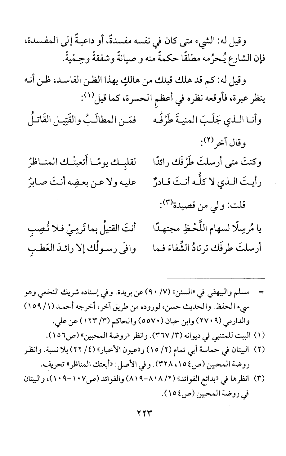 (¬1) البيت للمتنبي في ديوانه (3/ 367). وانظر "روضة المحبين" (ص 156).