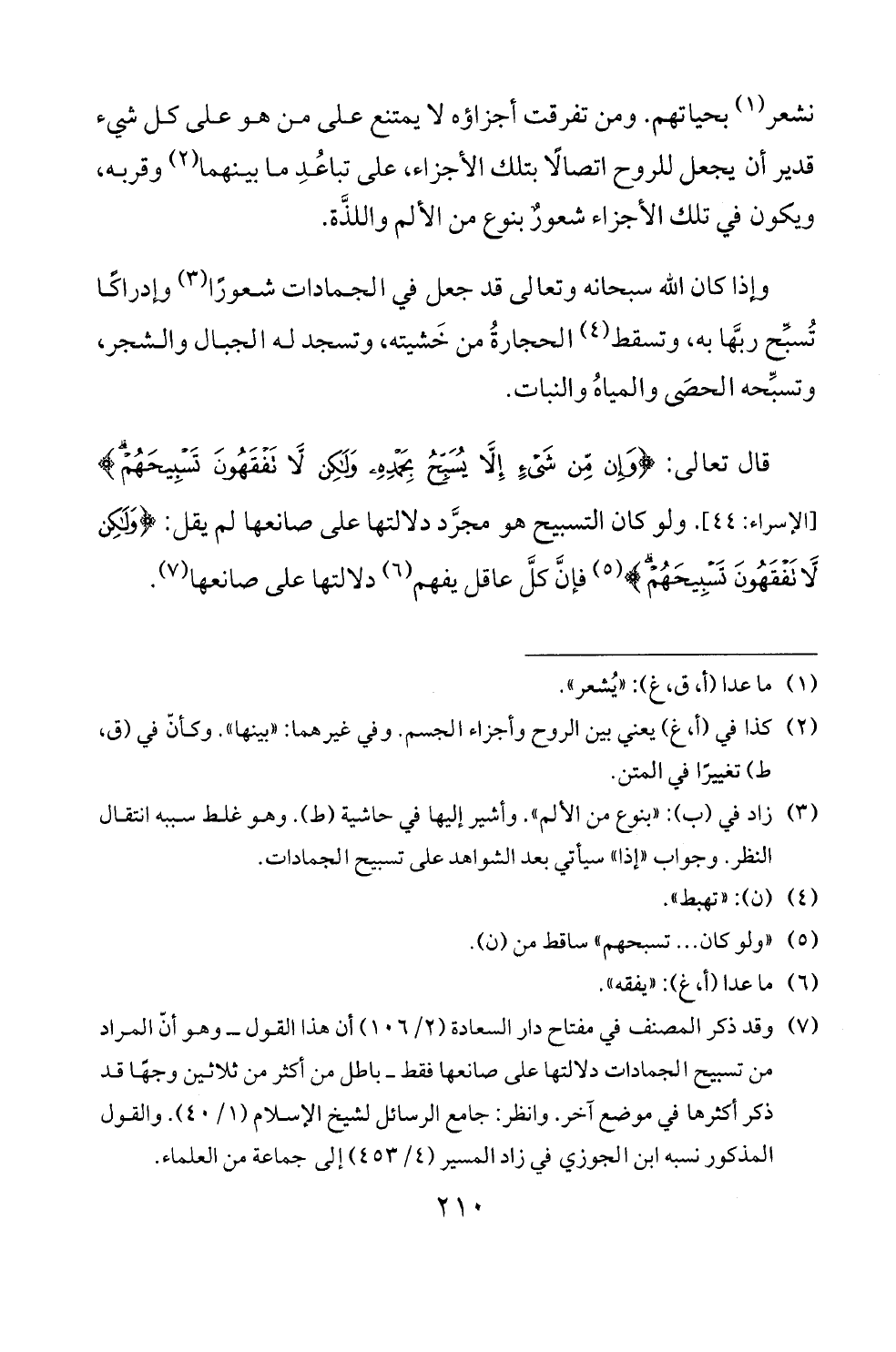 [الاسراء: 44]. ولو كان التسبيح هو مجرد دلالتها على صانعها لم يقل: <ولبهن