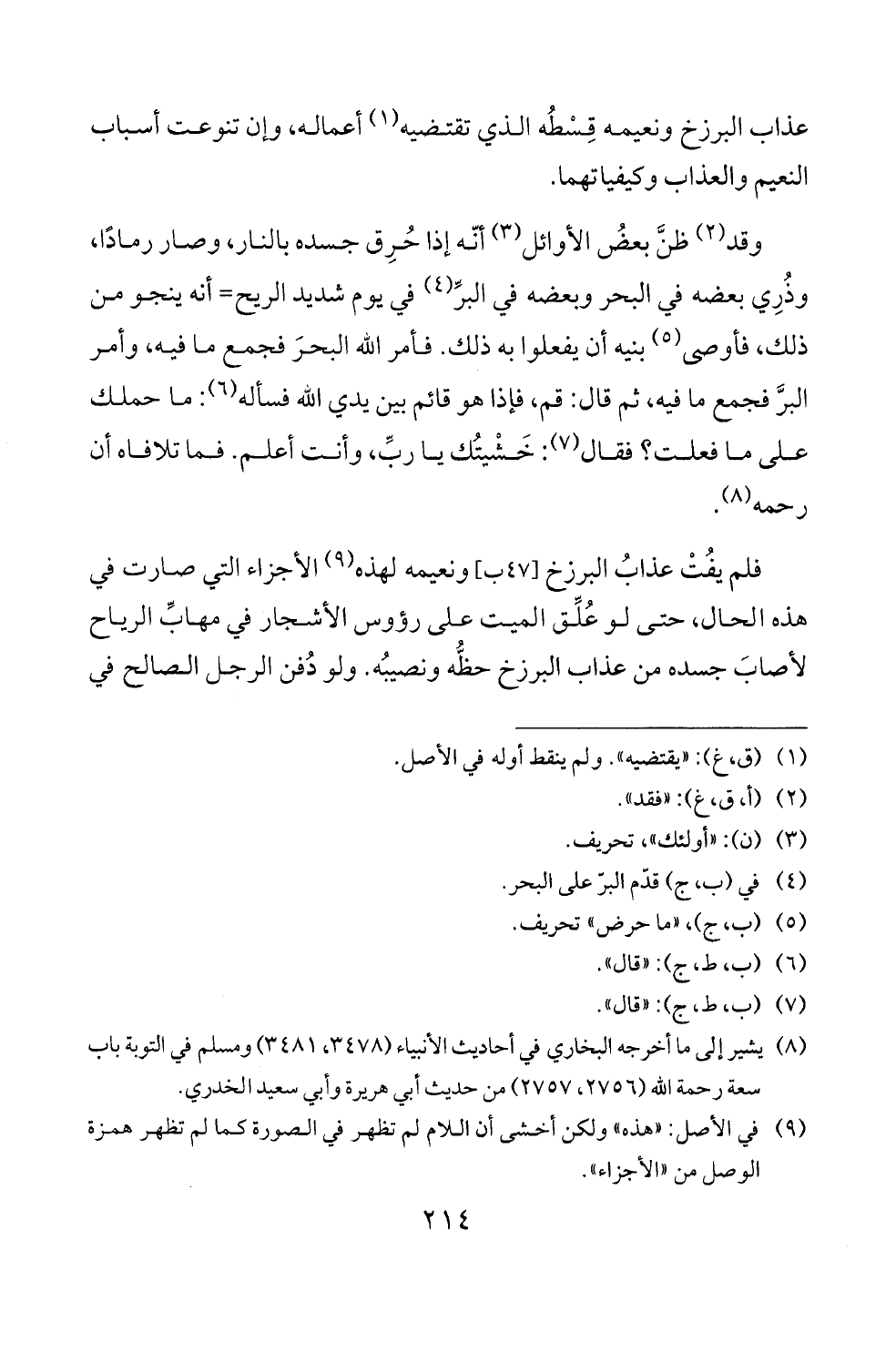 فلم يفت عذاب البرزخ [47 ب] ونعيمه لهذه (9) الاجزاء التي صارت في