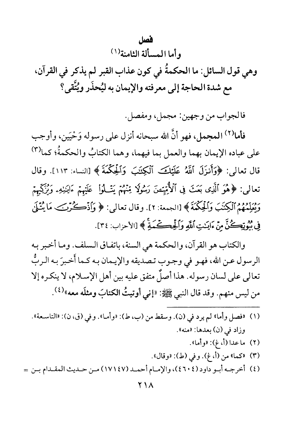 قال تعالى: <وأنزل المحه عليث الكئنب والحكمة) [النساء: 113]. وقال