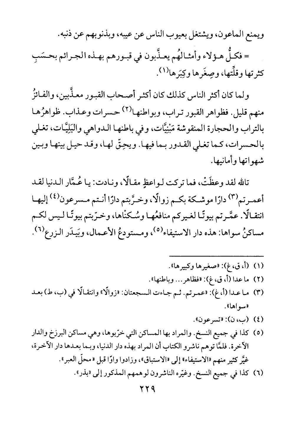 غئر كثير منهم " الاستيفاء" إلى "الاستباق "، وزادوا واوا قبل " محل العبر".