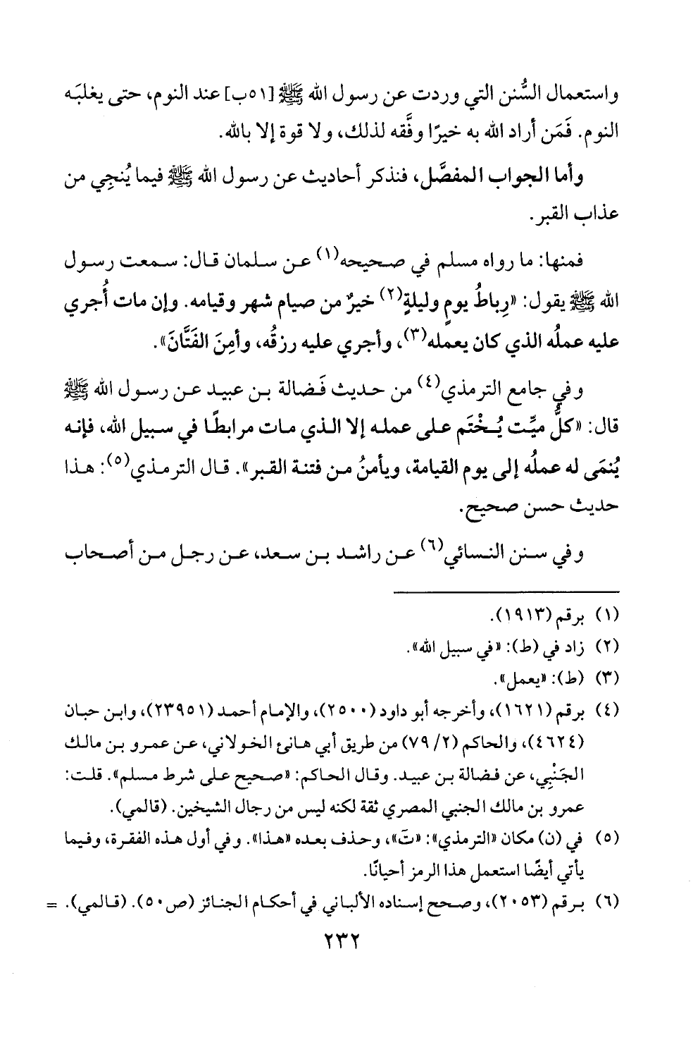 ينمى له عمله ا لى يوم القيامة، ويامن من فتنة القبر". قال الترمذي (5): هذا