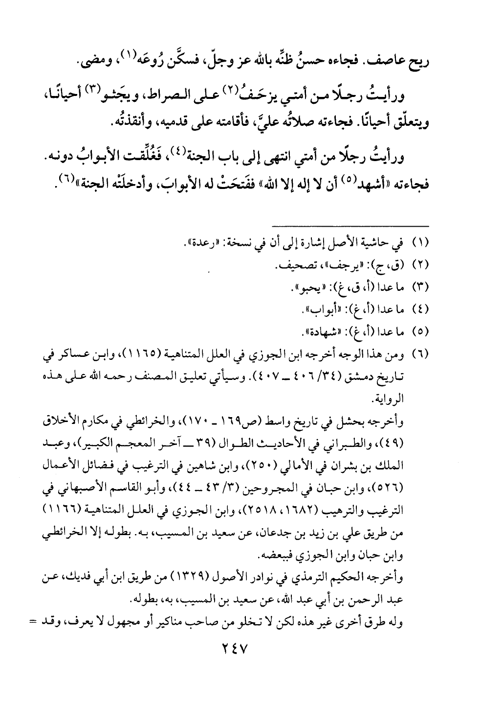 الترغيب والترهيب (1682، 18 25)، وابن ا لجوزي في العلل المتناهية (166 1)