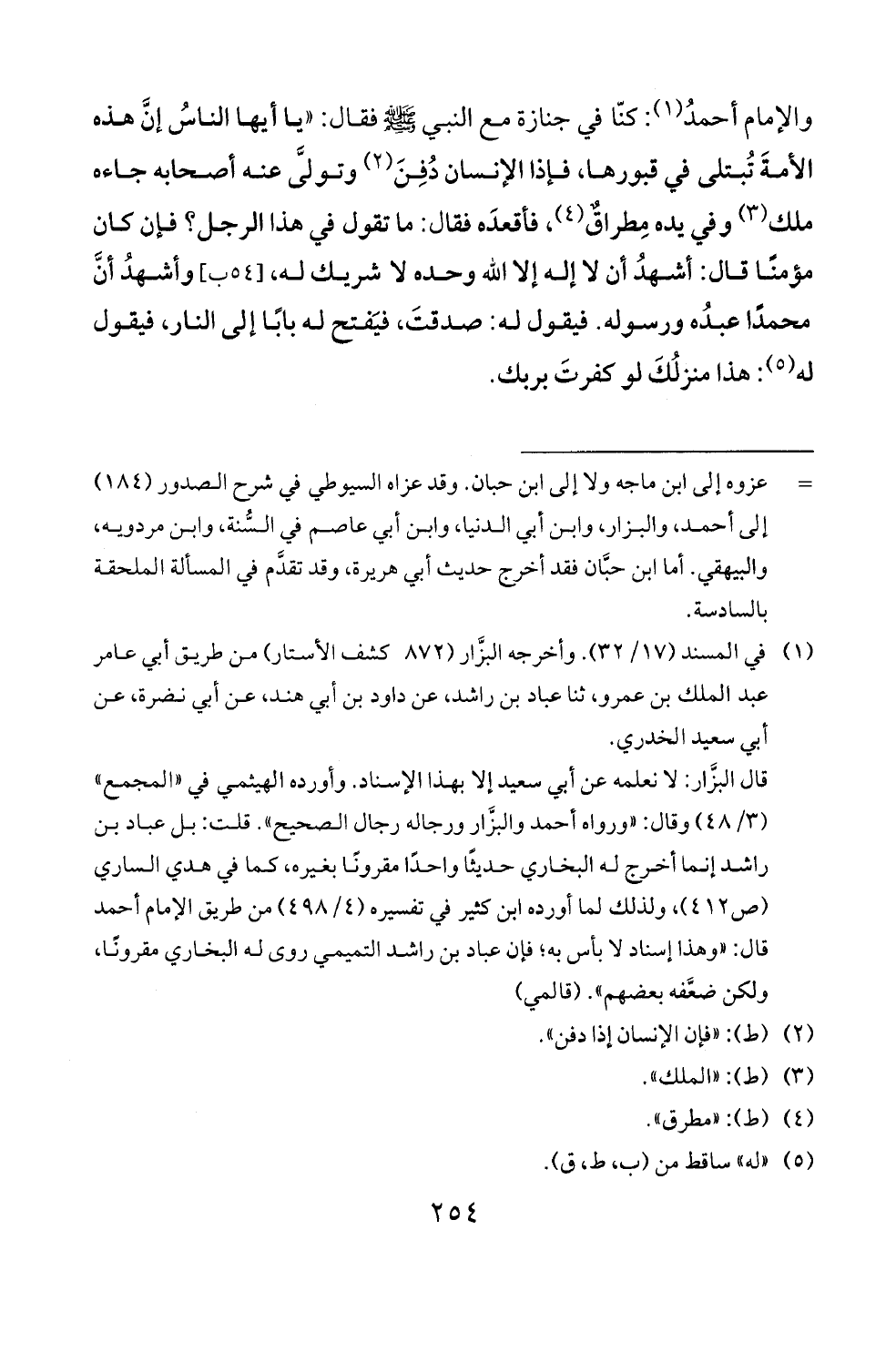 والامام أحمد (1): كنا في جنازة مع النبي ع! يم فقال: "يا أيها الناس ان هذه