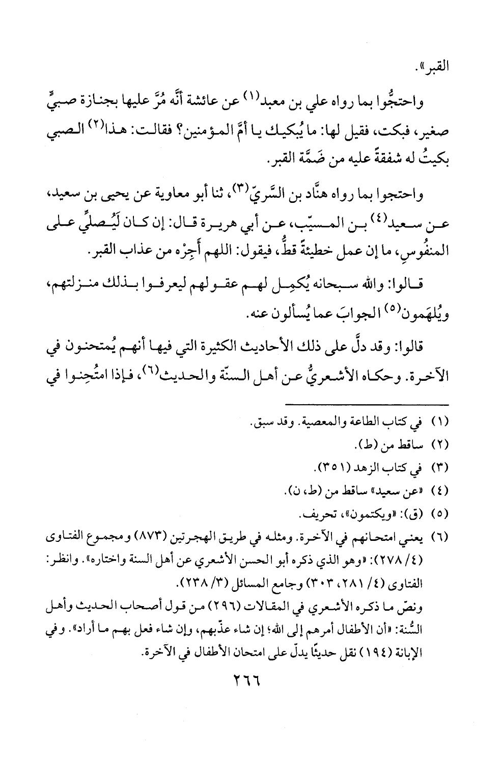 الابانة (94 1) نقل حديثا يدل على امتحان الأطفال في الاخرة.