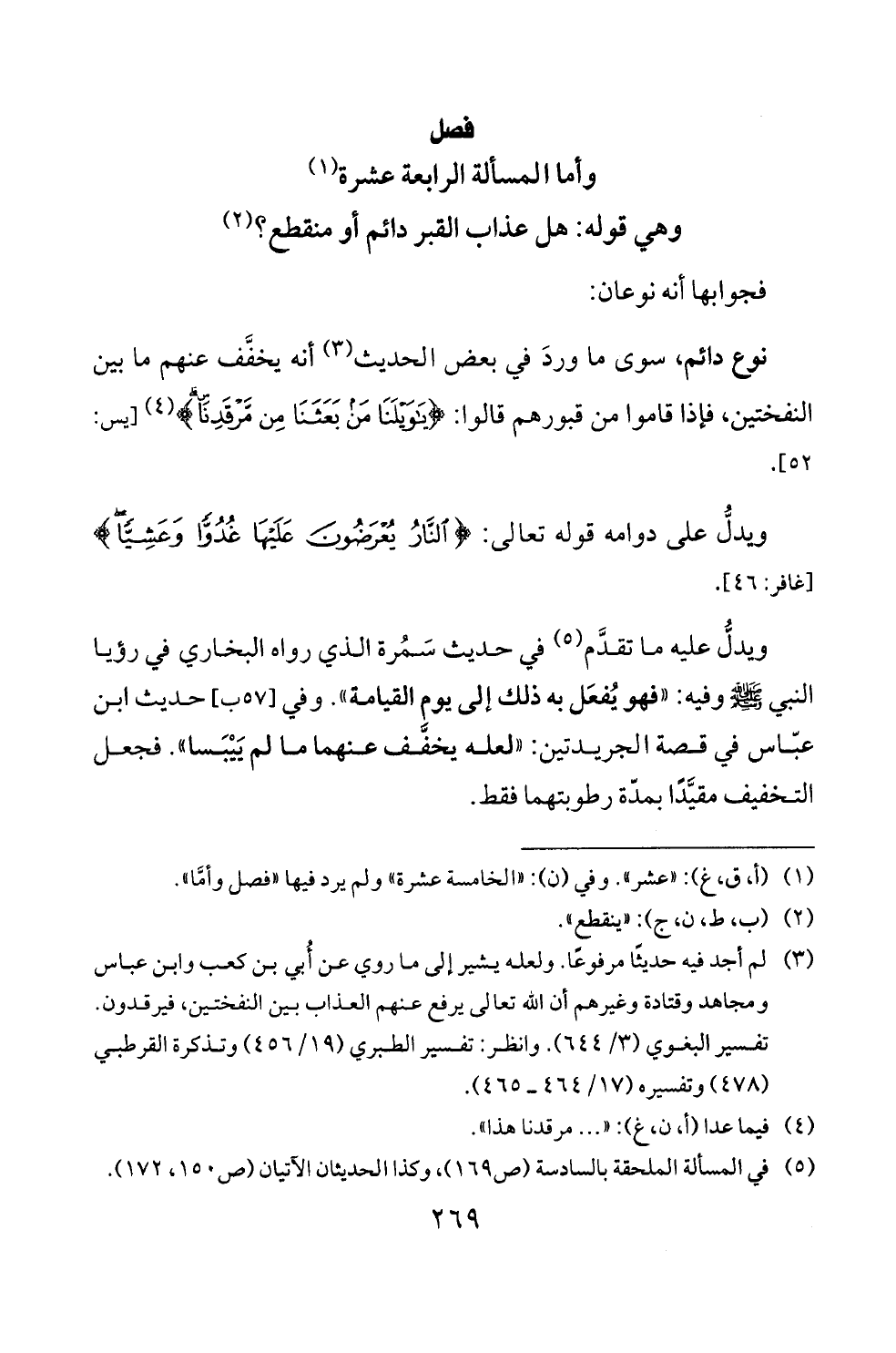 وهى قوله: هل عذاب القبر دائم أو منقطع؟ (2)
