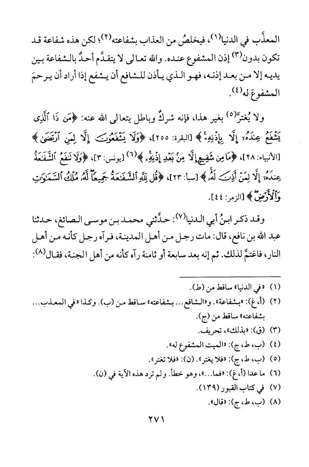 (2) (ا، غ): "بشفاعة ". و" الشا. . . بشفاعته " ساقط من (ب). وكذا " في المعذب. . .