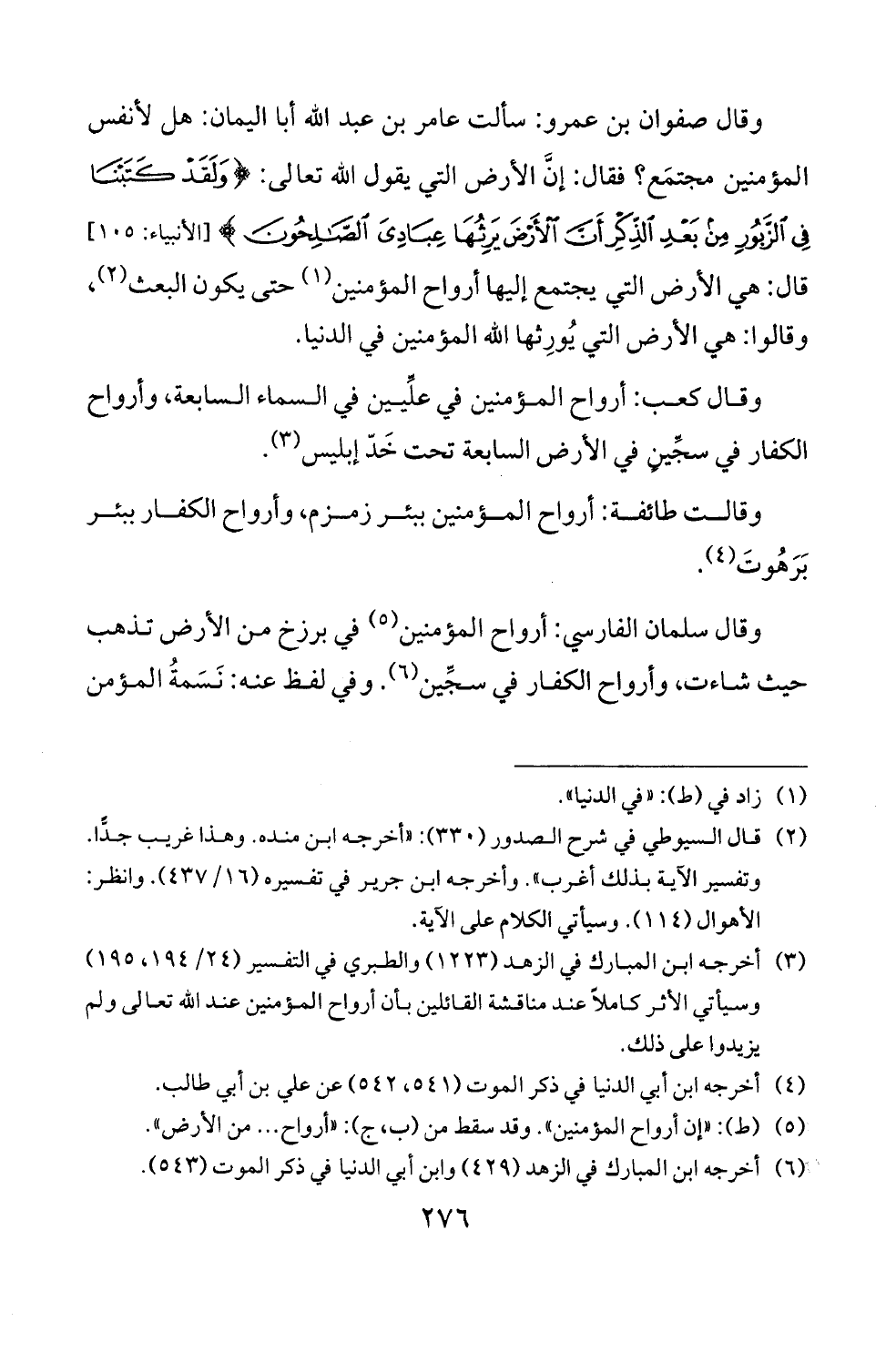 (5) (ط): "إن أرواح المؤمنين ". وقد سقط من (ب، ج): "أرواح ... من لارض".