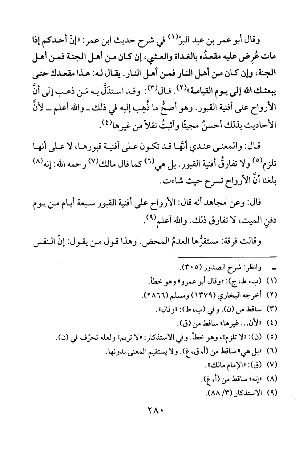 الأرواح على أفنية القبور. وهو صح ما ذهب إليه في ذلك - والله أعلم - لان