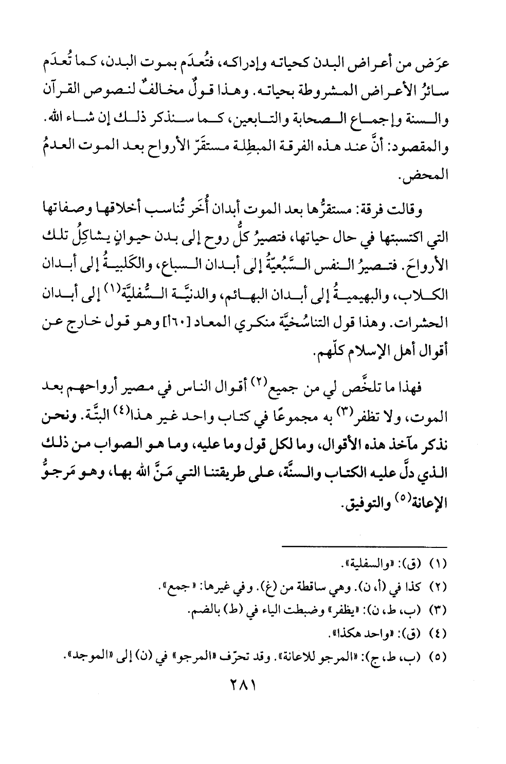 والمقصود: أن عند هذه الفرقة المبطلة مستقز الأرواح بعد الموت العدم