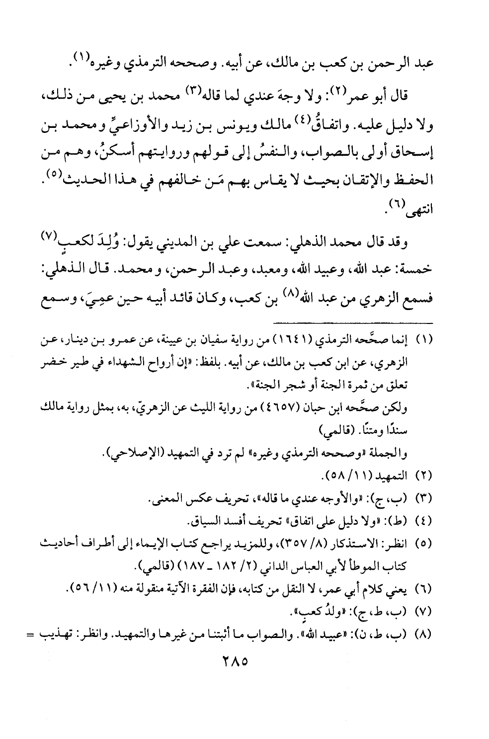 وقد قال محمد الذهلي: سمعت علي بن المديني يقول: ولد لكعب (7)