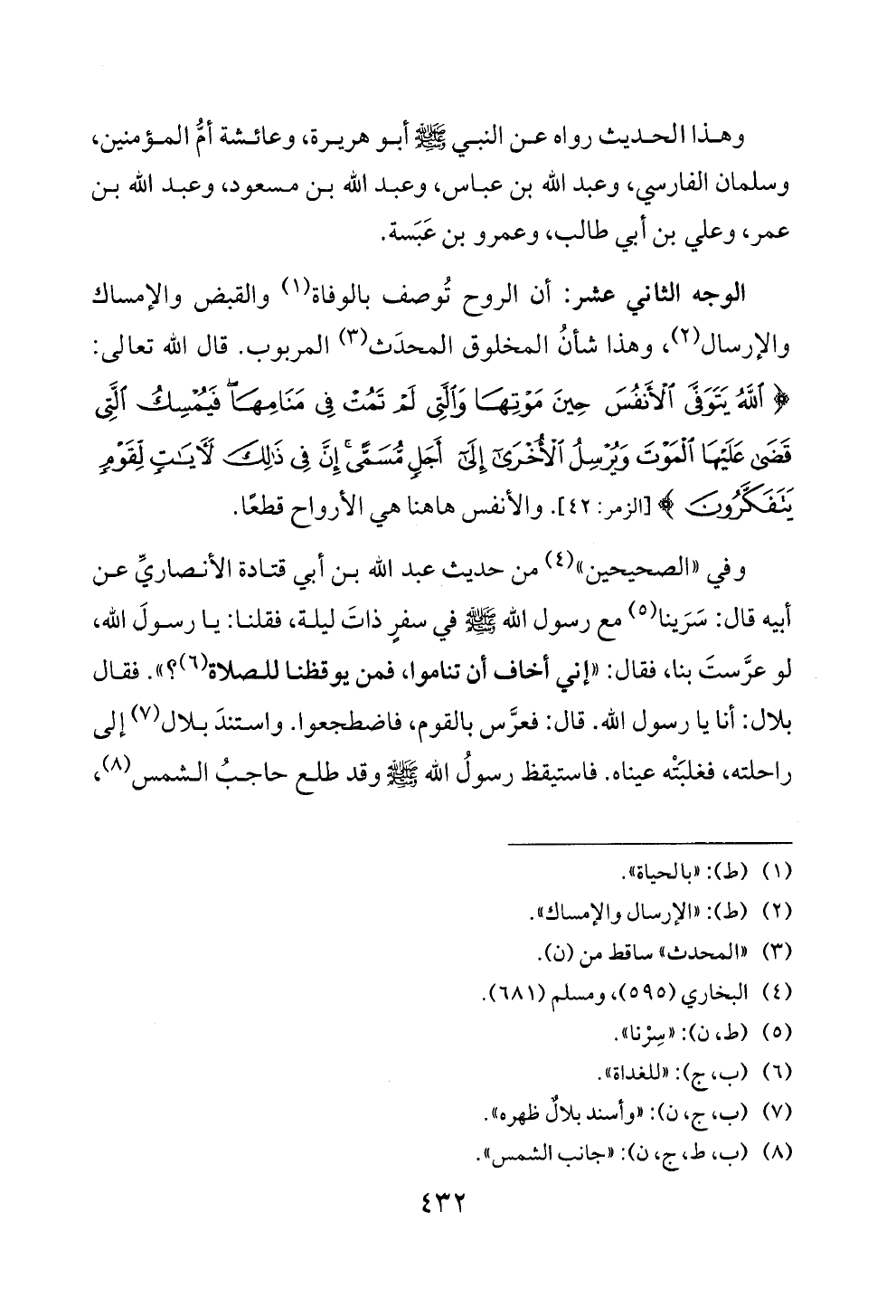 الوجه التاني عشر: أن الروح توصف بالوفاة (1) والقبض والامساك