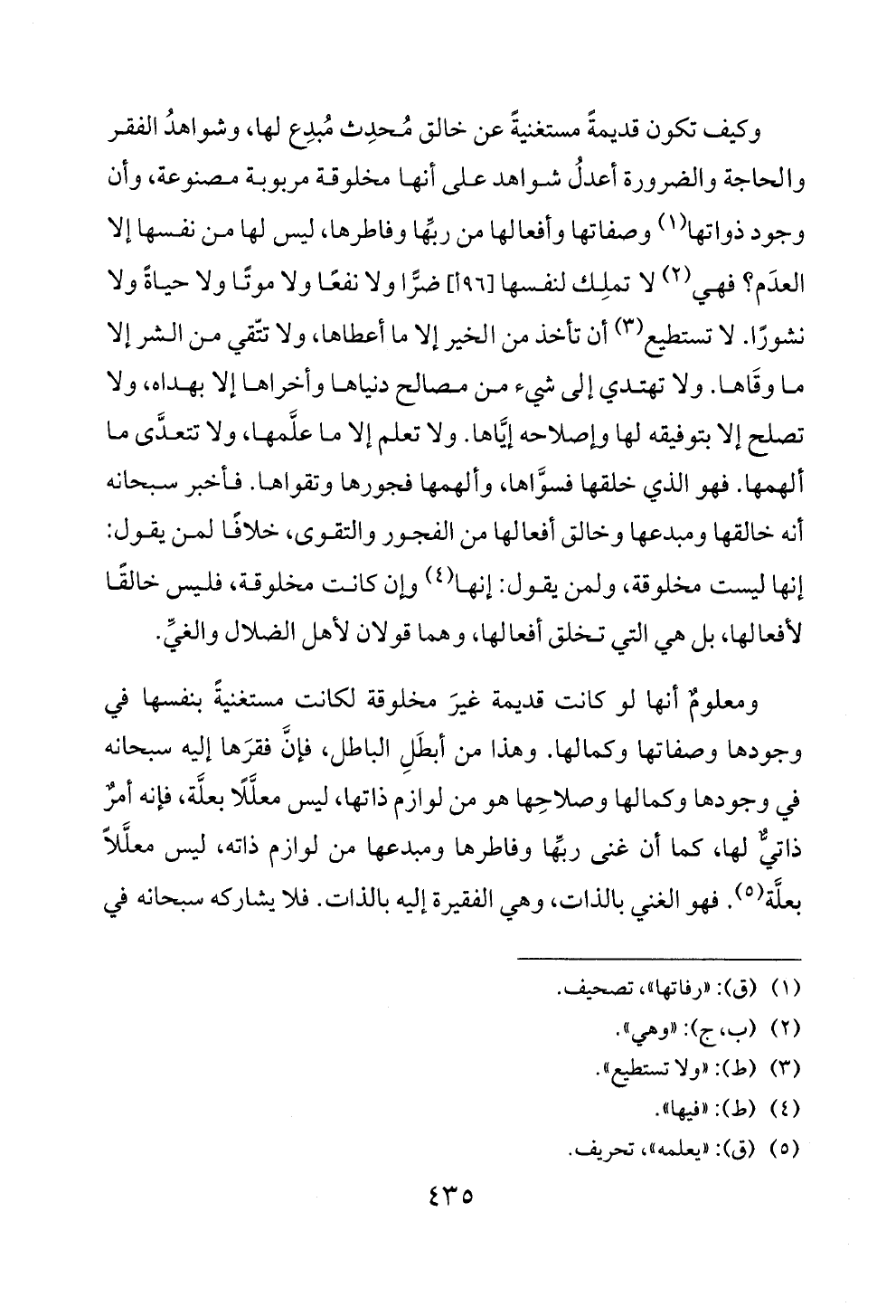 بعلة (5). فهو الغني بالذات، وهي الفقيرة إليه بالذات. فلا يشاركه سبحانه في