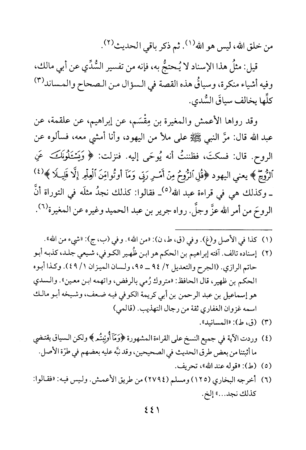 الروح من امر الله عز وجل. رواه جرير بن عبد ا لحميد وغيره عن المغيرة (6).