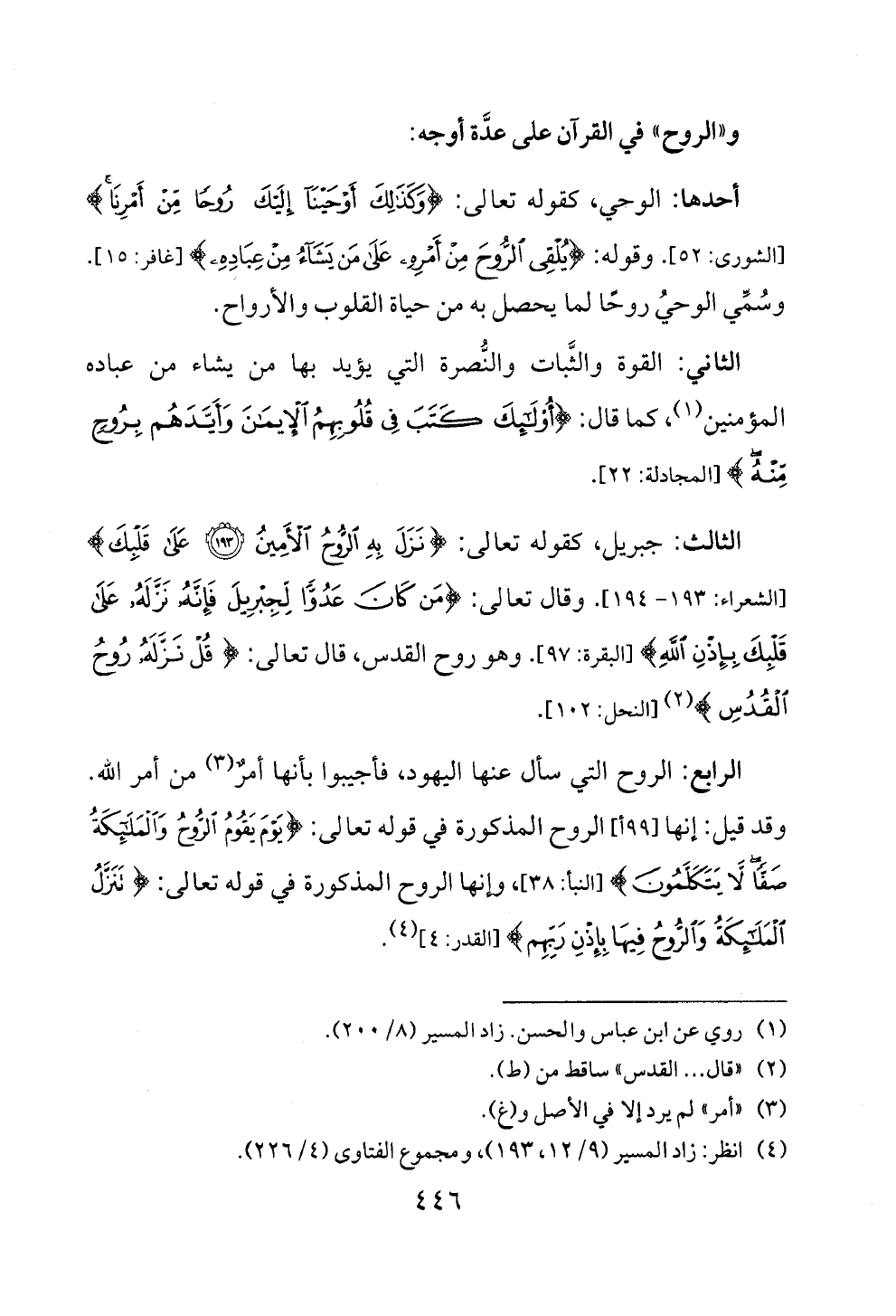 الرابع: الروح التي سأل عنها اليهود، قأجيبوا بأنها مر (3) من أمر الله.