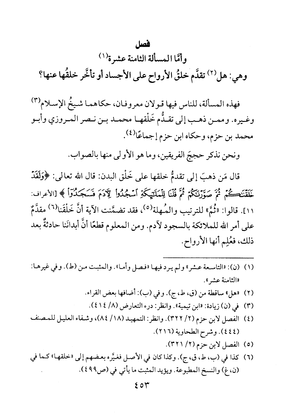 وهي: هل (2) تقدم خلق الأرواح على الأجساد أو تاخر خلقها عنها؟