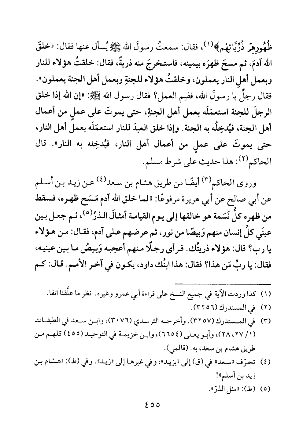 من ظهره كل نسمة هو خالقها إلى يوم القيامة أمثال الذر (5)، ثم جعل بين
