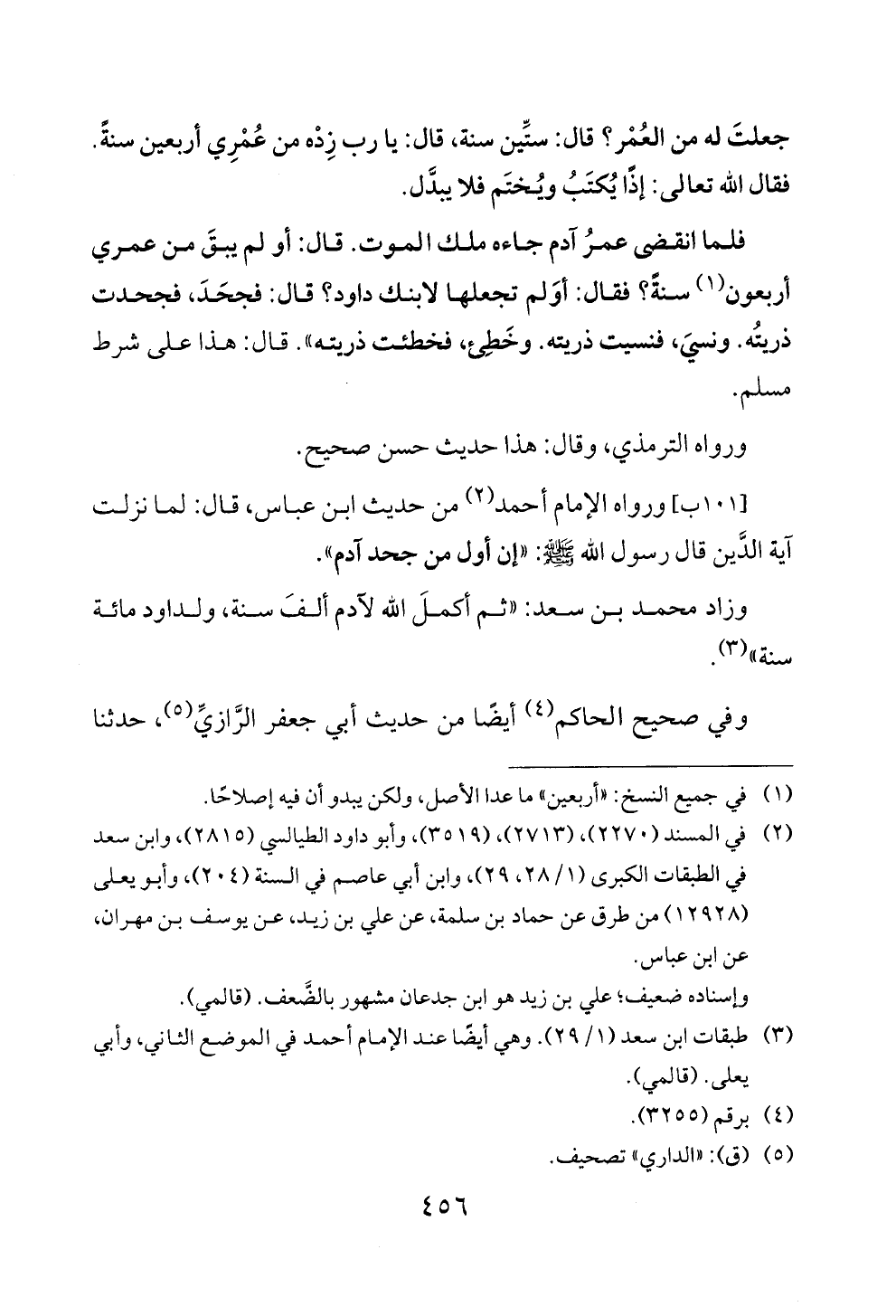 وزاد محمد بن سعد: "ثم اكمل الله لادم الف سنة، ولداود مائة
