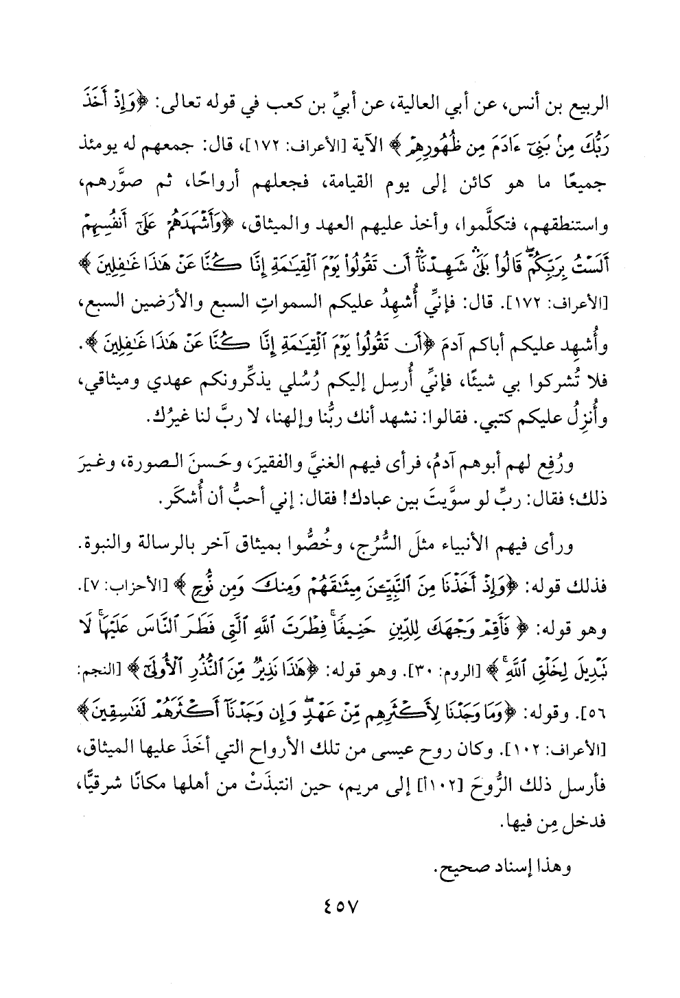 الربيع بن انس، عن ابي العالية، عن ابي بن كعب في قوله تعالى: <وإذ اخذ