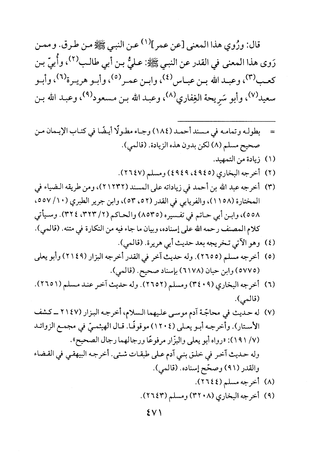 روى هذا المعنى في القدر عن النبي! ي!: علي بن ابي طالب (2)، وابي بن