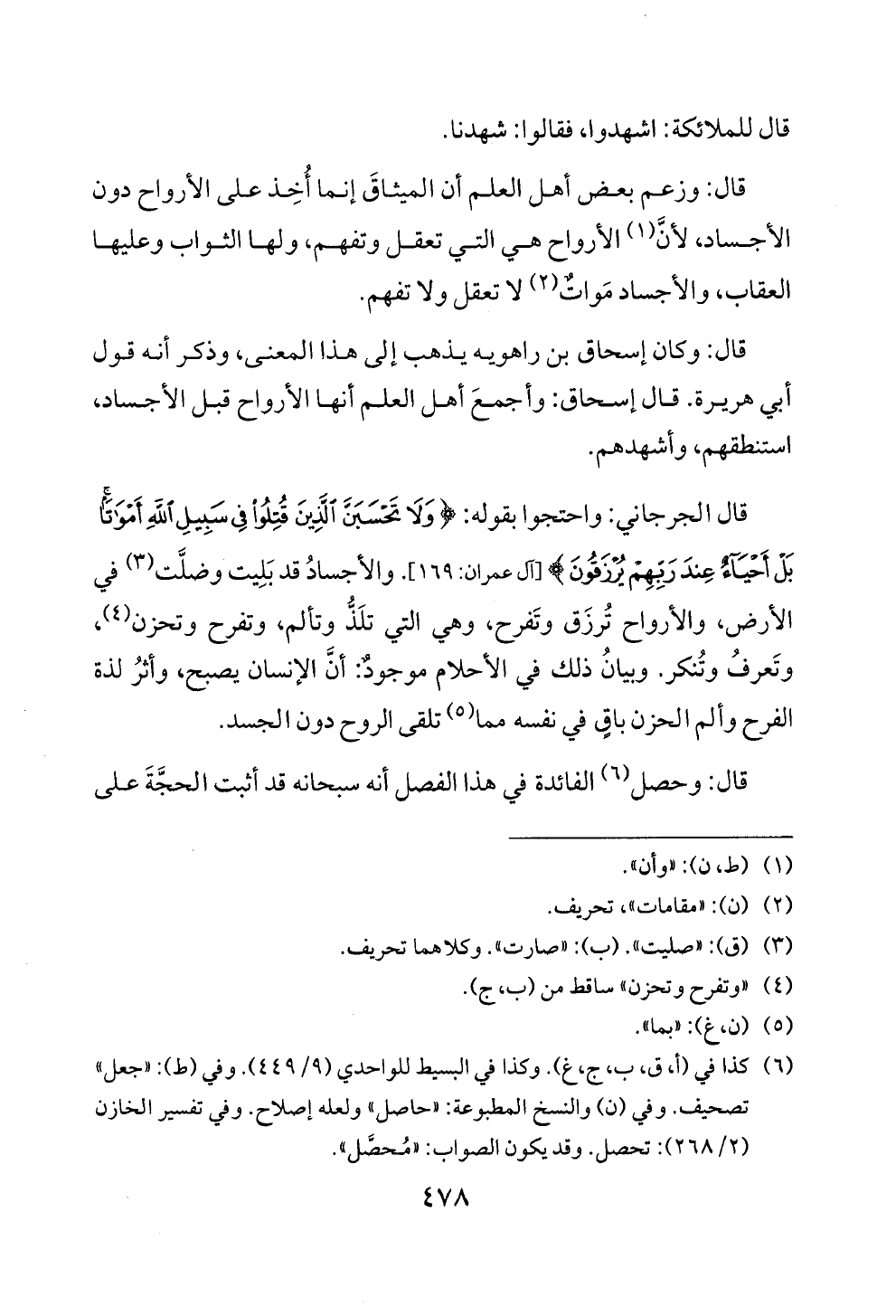 قال الجرجا ني: واحتجوا بقوله: < ولا تخسبن الذين قتلوا فى سبيل آلله أتولا